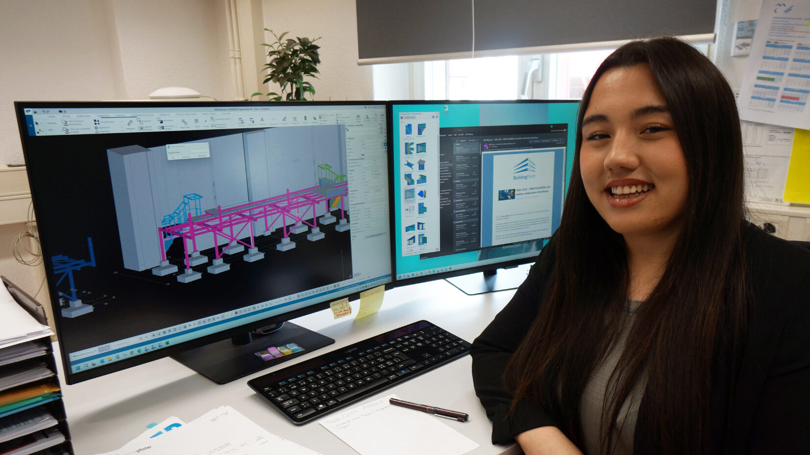 «Schon als Kind wusste ich: Ich will mal Konstrukteurin im Stahlbau werden, da mein Vater auch als Konstrukteur arbeitet und mich schon als Kind auf Baustellen mitnahm. Als Metallbaukonstrukteurin modelliere ich am PC 3D-Stahlbau-Konstruktionen, zum Beispiel Hallen, Treppen, Brücken oder auch mal Geländer. Wir bekommen von den Architekten Pläne, und ich modelliere aus den Daten die Konstruktion für die Produktion und Montage. Am liebsten zeichne ich Montagepläne – da muss man besonders genau sein: Jedes Detail muss stimmen, ich zeichne jedes Schräubchen und jede Schweissnaht. Einen Tag pro Woche gehe ich in die Berufsschule. In unserer Klasse sind wir zu zwölft, davon die Hälfte Frauen – das ist eher ungewöhnlich. Ich habe dort enge Freundschaften geknüpft, eine Mitschülerin ist meine beste Kollegin geworden. In unserer Branche arbeiten vorwiegend Männer.